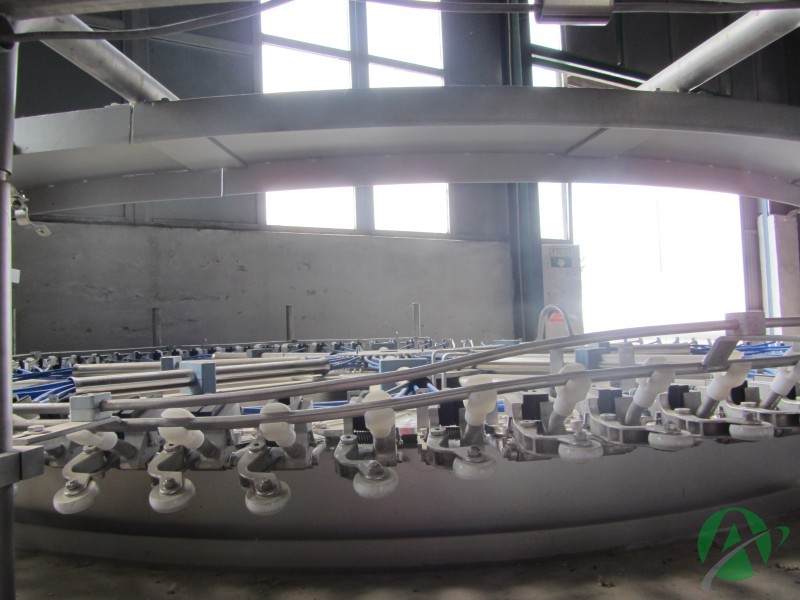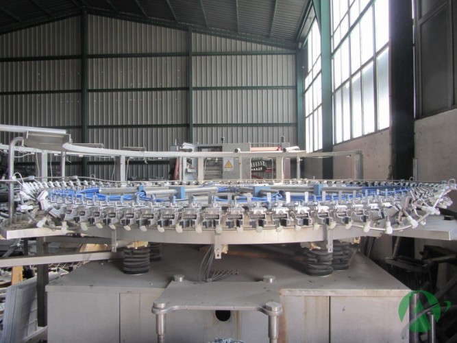Rotary rinser for glass bottle.